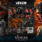 The greatly detailed collectible figure is skillfully crafted based on Venom from Venom: Let There Be Carnage movie, features a Venomized Eddie Brock head sculpt, a grinning head sculpt, a head sculpt with fanged mouth and three interchangeable protruding tongues; a specialized body measuring approximately 38cm tall showcasing a high level of detailed sculpting specially on the skin texture; beautifully painted in black polarized paint that gives natural shiny glow from different viewing angles; interchangeable symbiote weapons and accessories including sickle, a number of symbiote accessories with tentacles attachable to figure’s back; a rod; specially crafted hands for poses; and a figure stand.