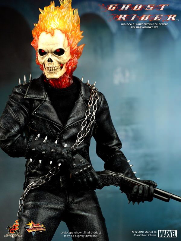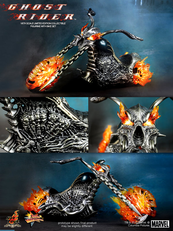 Hot Toys is proud to present the 1/6th scale Ghost Rider Limited Edition Collectible Figurine with Hellcycle from the Ghost Rider movie. The highly detailed Ghost Rider collectible is specially crafted based on the image of Nicolas Cage in the movie.