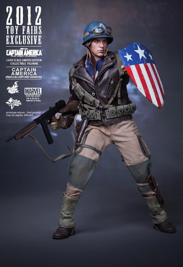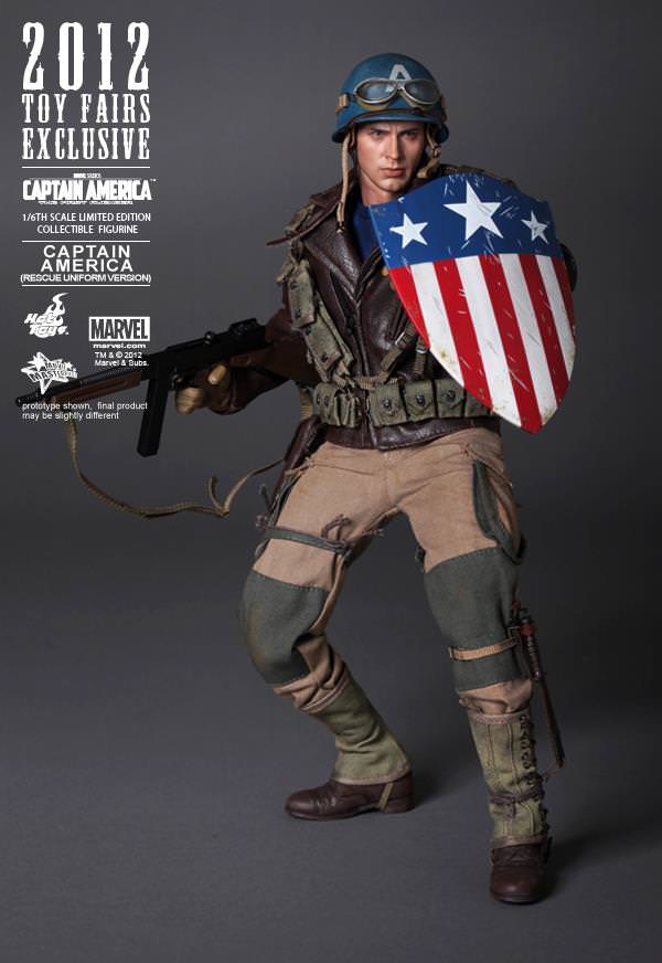 Hot Toys is proud to present the Captain America (Rescue Uniform Version) Limited Edition Collectible Figurine of from the Captain America: The First Avenger movie as the 2012 Toy Fairs Exclusive item. The movie-accurate collectible is specially crafted based on the image of Chris Evans as Captain America/ Steve Rogers in the movie.