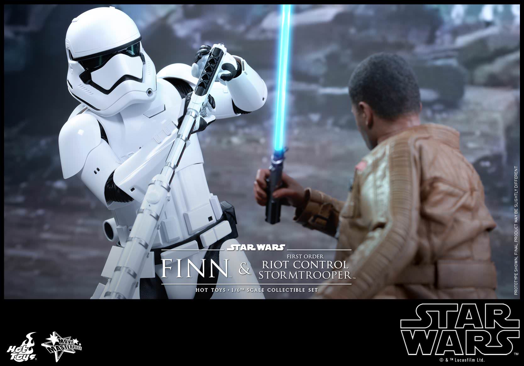 Today, Hot Toys is very excited to officially present a special 1/6th scale collectible figures set featuring Finn and First Order Riot Control Stormtrooper to let fans reenact this thrilling battle!