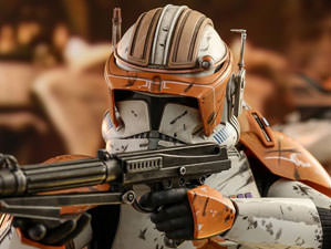 Skillfully created based on the appearance of Clone Commander Cody in the movie, the 1/6th scale collectible figure features a newly developed head sculpt with amazing likeness, a meticulously crafted Clone Trooper armor and helmet with weathering effects, different styles of blasters, interchangeable right arm with LED light-up hologram projector, a jetpack, a variety of miniature hologram figures, and a sand-themed figure base.