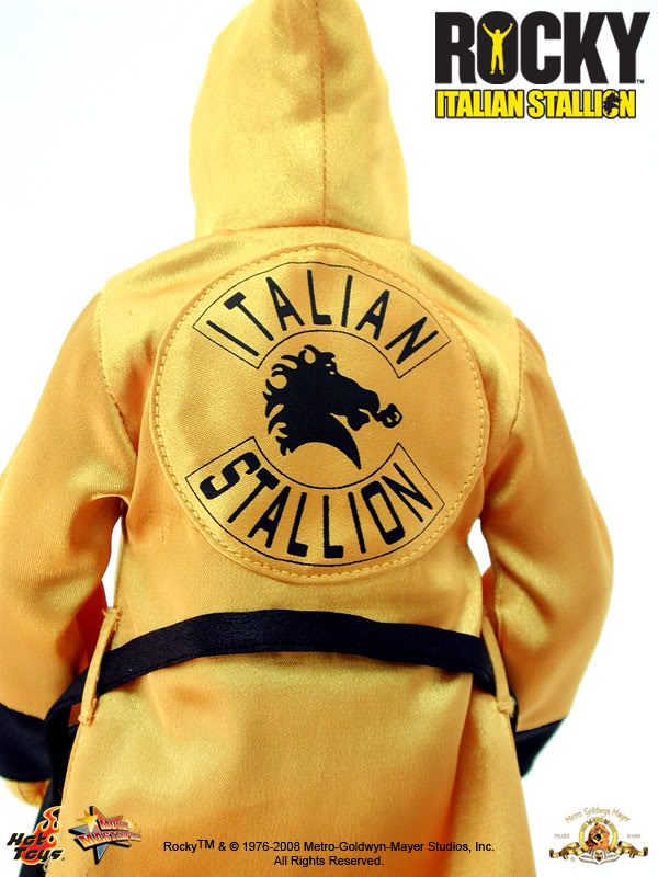 - Real fabric costume with shorts, socks, and the ‘Italian Stallion’ yellow robe