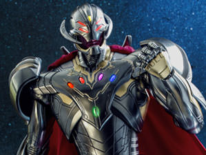 Skillfully crafted based on the appearance of Infinity Ultron in the animation series, the diecast figure stands 39cm in height, features a newly developed helmeted head sculpt with LED light-up function on eyes and Mind Stone; highly-detailed helmet with LED light up function and magnetic flip-up design; multiple layers of titanium grey and matted gold paint application on the armor embedded with LED-light up Infinity Stones; most noticeable for its signature double-headed spear; and figure stand.