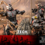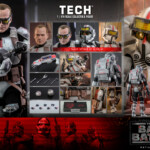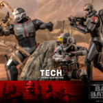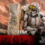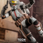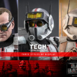 The Tech collectible figure features characters’ unique armor and helmet with weathering effects, an interchangeable head sculpt with realistic likeness, a pair of goggles, a wearable helmet, a pair of blaster pistols, a selection of tools, a backpack, and a display base!